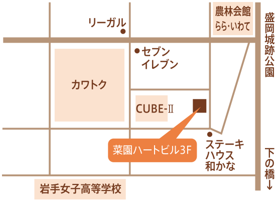 〒020-0024 岩手県盛岡市菜園1丁目8−2 菜園ハートビル3F