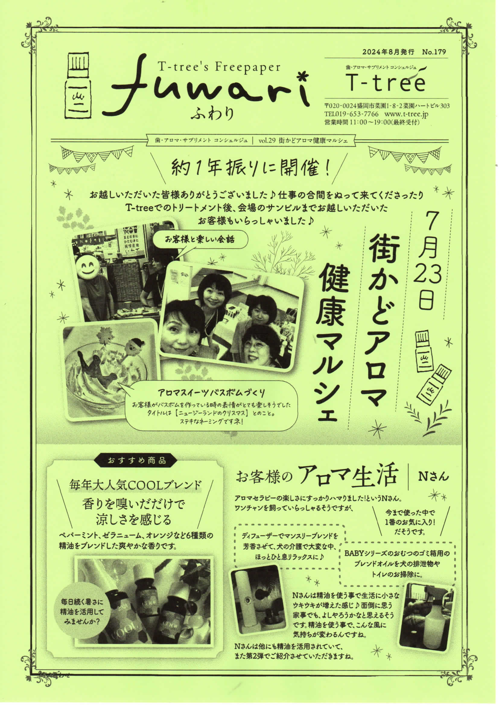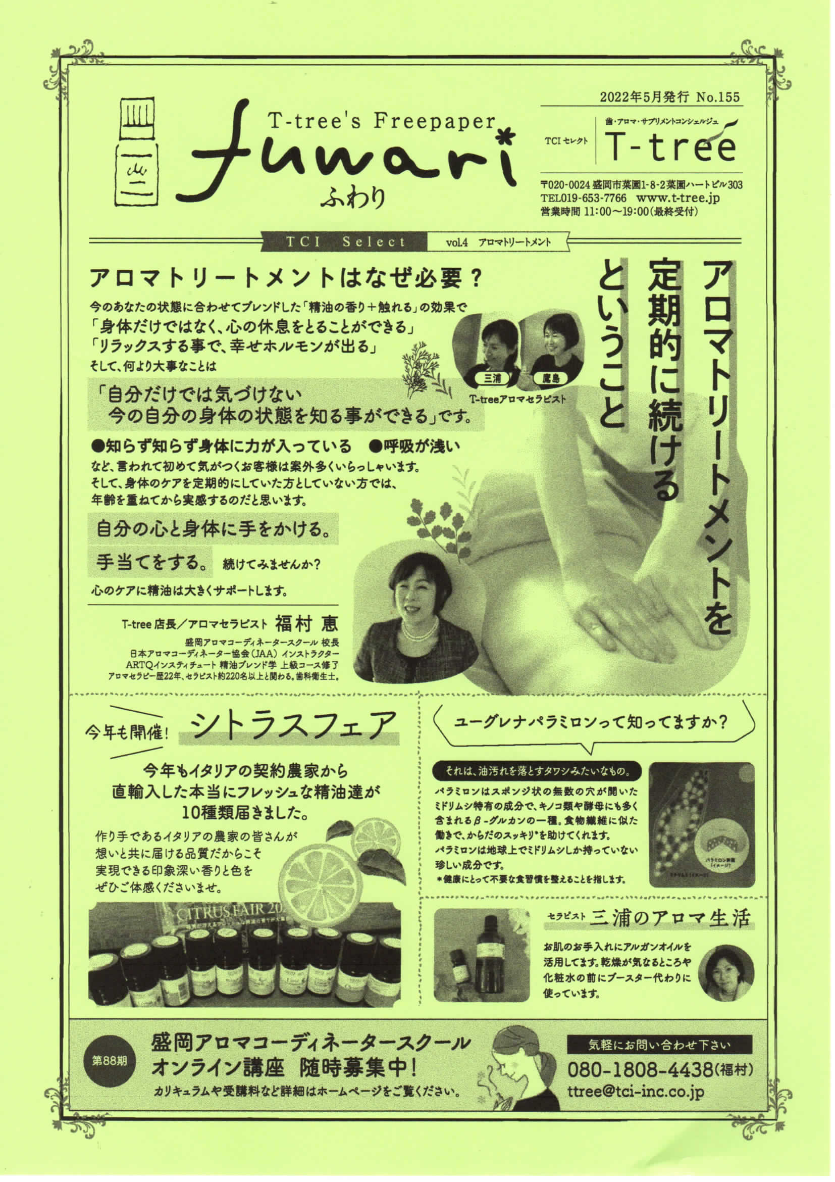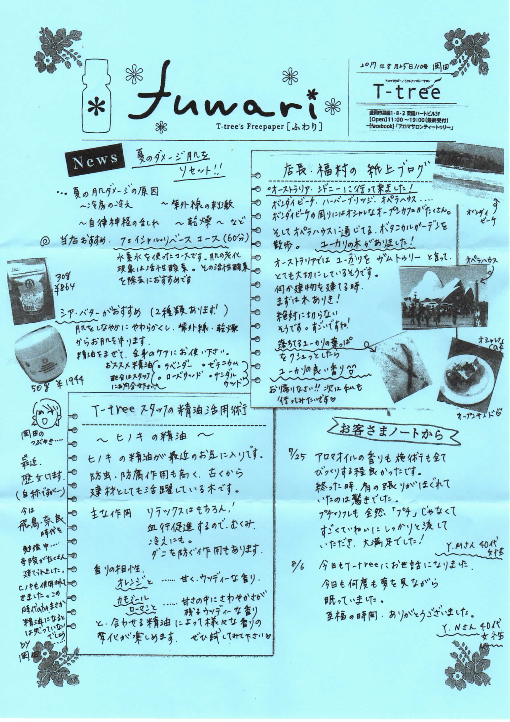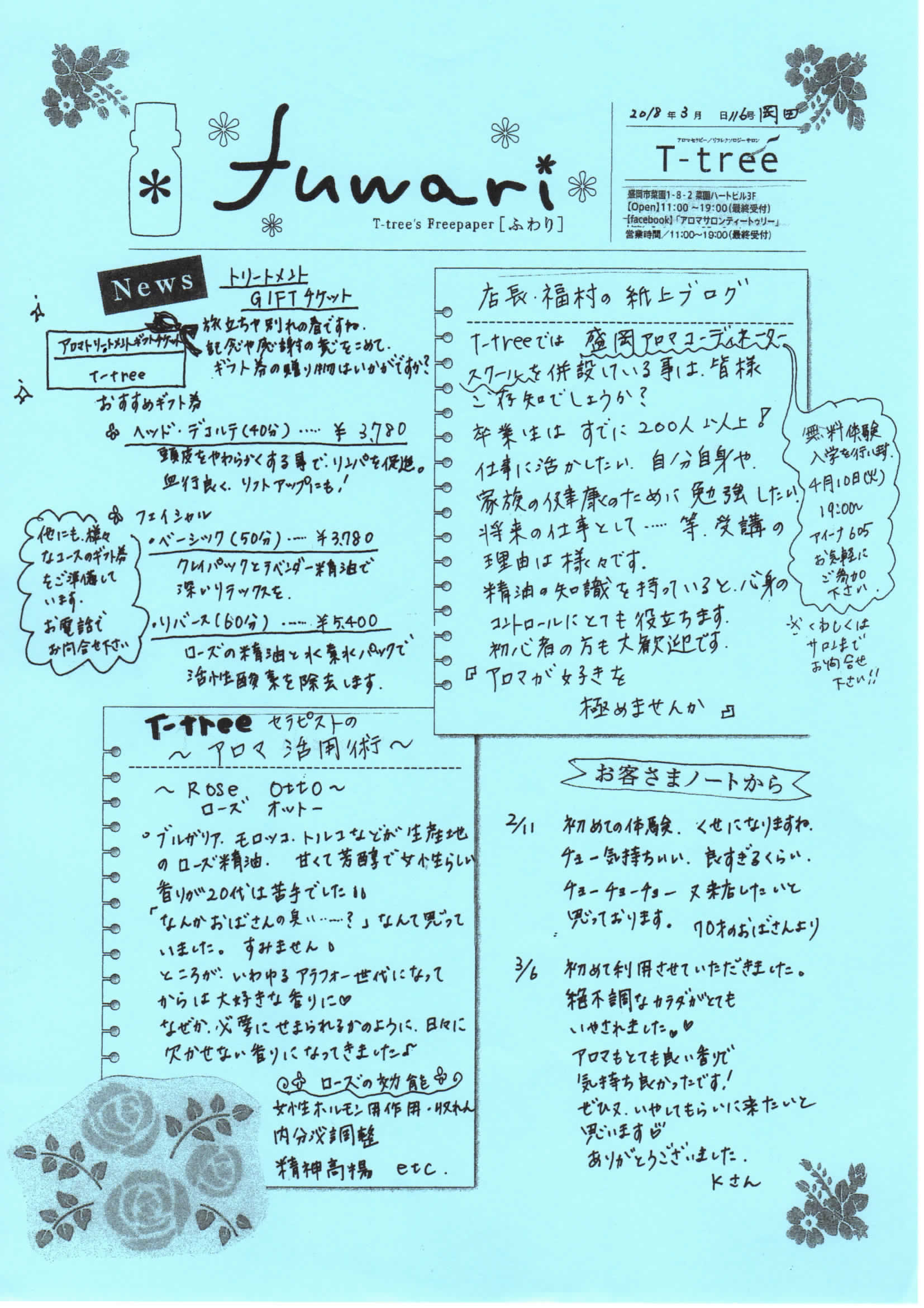 フリーペーパーfuwariは「アロマを愛してやまない私たちをもっと知って欲しい!」の気持ちから生まれ、