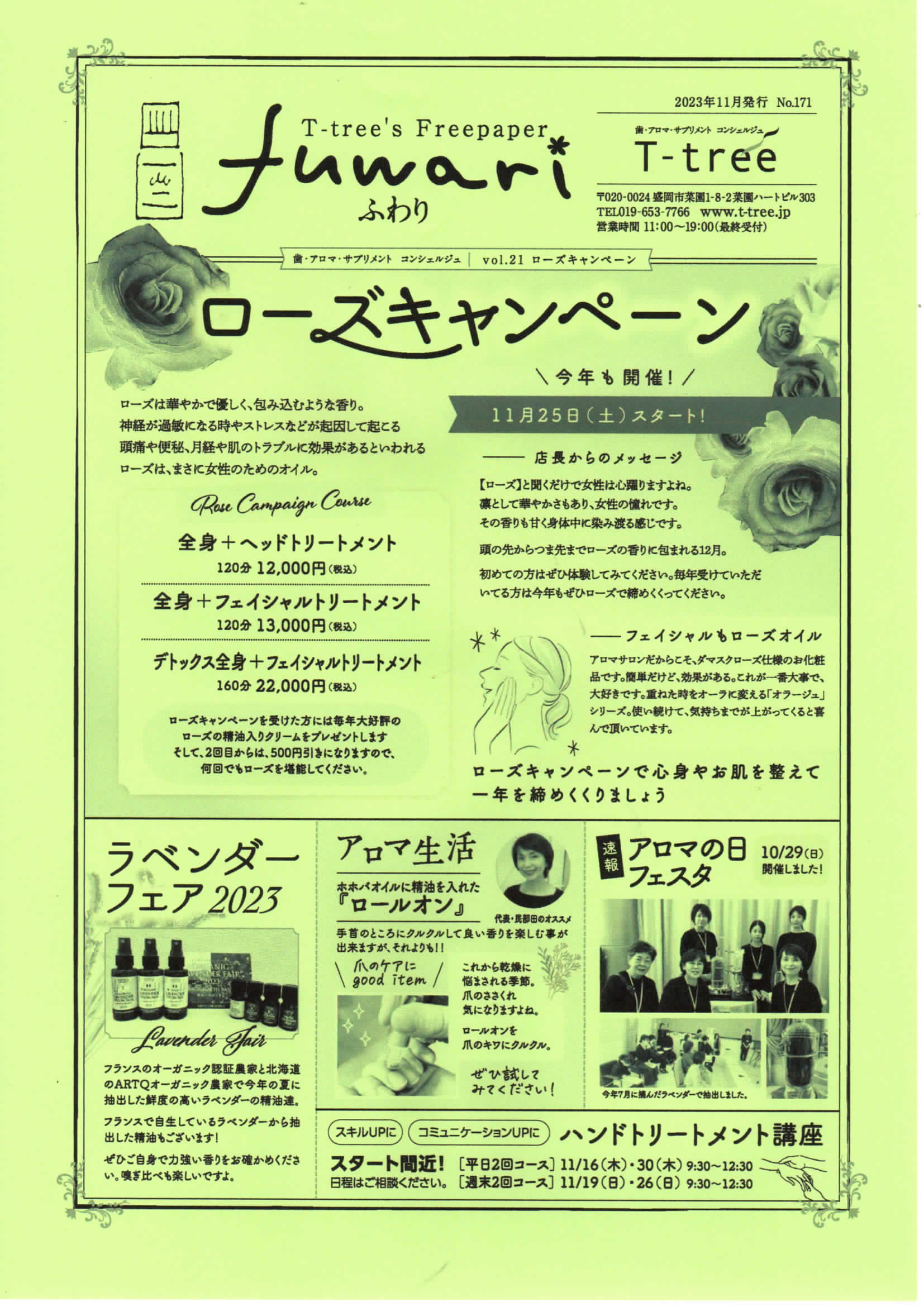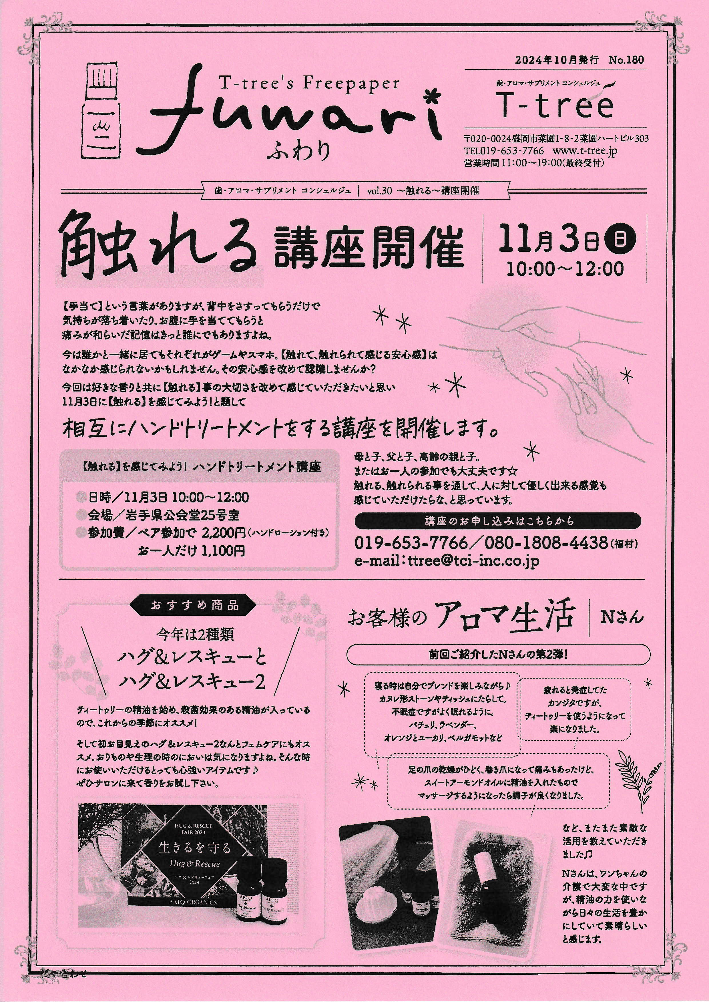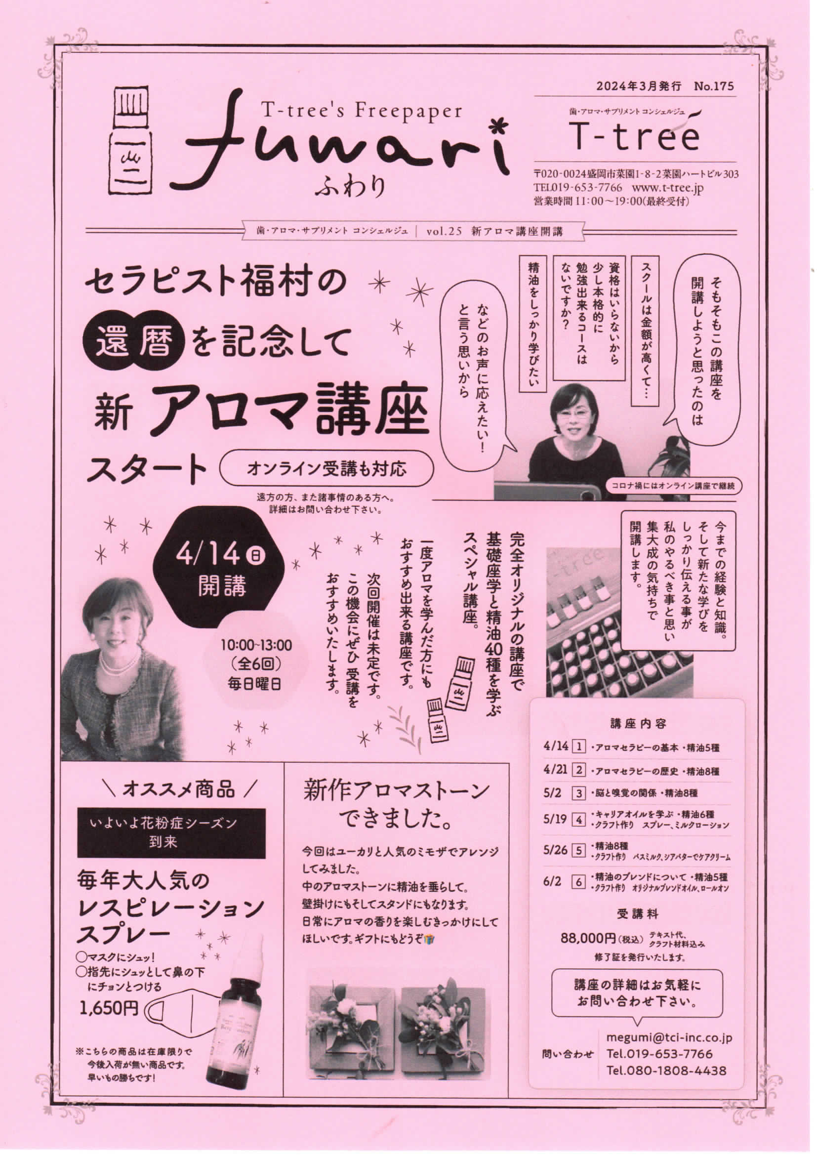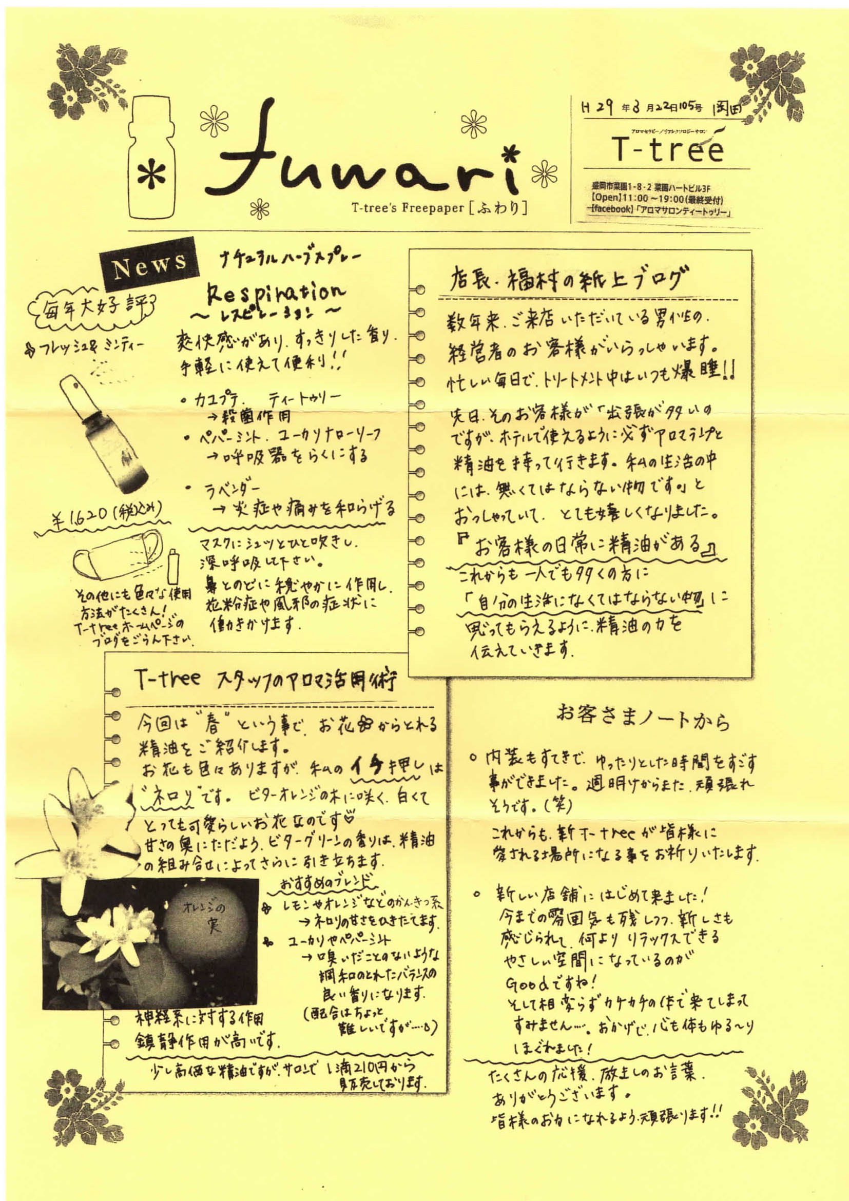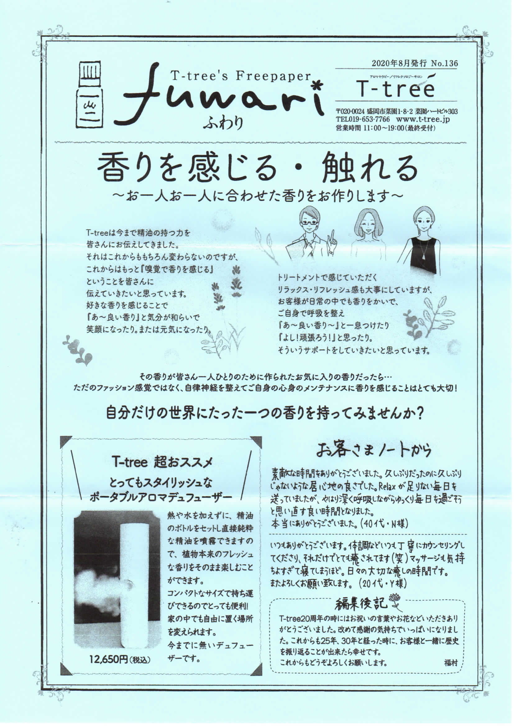 フリーペーパーfuwariは「アロマを愛してやまない私たちをもっと知って欲しい!」の気持ちから生まれ、